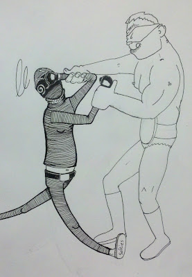 I was really happy with the people on front row until I got to the far right. For some reason I made the Ninja Con staffer's arm a mile long. Then I guess I subconsciously compensated for it by making the kid's arm about half as long as it should have been. There are other imperfections, but I'll keep them to myself.